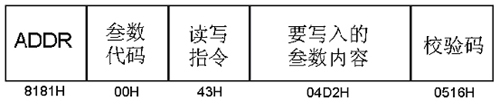 校驗碼: 為一個16位數(shù)據(jù),占用二個字節(jié). 校驗碼=ADDR+叁數(shù)代碼*256+讀寫指令+要寫入的叁數(shù)內(nèi)容