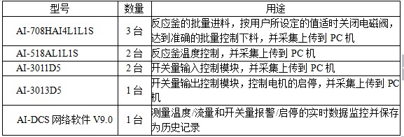 ⑴、在計算機上可完全操作AI-708H型流量積算儀的批量控制功能為所有3個反應釜定量加料。⑵、實時記錄反應釜底及釜內(nèi)的溫度(使用AI-518溫度控制器)及聚氨酯的反應情況。⑶、記錄并保存所有數(shù)據(jù),以便將來查詢。⑷、實時數(shù)據(jù)提供時間查詢,反應釜的加料歷史數(shù)據(jù)提供“釜號”和“批號”查詢。⑸、提供實時曲線、實時報警及報警限修改。⑹、提供操作權(quán)限及設定,防止誤操作。